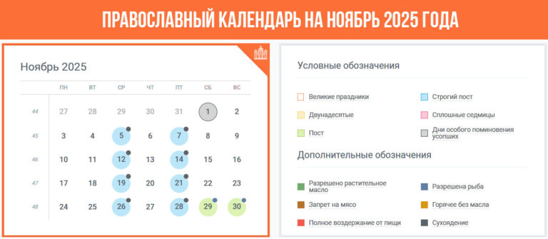 Православный календарь на ноябрь 2025 года