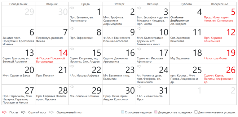 Православный календарь на октябрь 2025 года