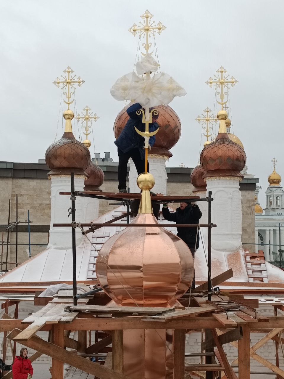 На днях подняли и установили обновленный крест на купол трапезной части храма. Теперь все кресты стоят на своих местах и вновь сияют Богоспасаемому городу Саранску.